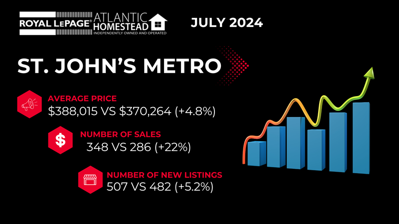 Royal LePage Atlantic Homestead - Brokerage of the Year We’re already grateful every day to be surrounded by such an amazing office—from our hardworking agents to our supportive owner, broker, and admin staff. We see the dedication and heart that goes into everything we do, and while we already know how special this place is, being recognized for it .... March 2025 St. John's Housing Market Update: What’s Hot and What’s Not Spring is in the air, and so is some serious action in the St. John's housing market! March 2025 brought a mix of highs, lows, and plenty of interesting trends to keep buyers, sellers, and real estate enthusiasts on their toes. Let’s dive into the latest scoop with a lighthearted twist. 1. In.... Spring into Action: February 2025 Housing Market Update As we step into the new season, the St. John's Metro housing market is buzzing with excitement! Let's take a look at the highlights from February 2025 that are making waves in real estate. Inventory: The Hot Commodity The housing inventory has taken a dramatic plunge, dropping by a whopping 32.4.... St. John's Real Estate Market January 2025 St. John's Housing Market Update: Positive Trends in January 2025 The local housing market showed promising signs in January 2025, with several key indicators pointing towards a strong start to the year. Let's dive into the latest trends and what they mean for buyers and sellers. Inventory Tight.... St. John's Real Estate Market July 2024 As we step into August, it’s time to reflect on the Metro Market's performance in July—and what a month it was! The numbers reveal a dynamic and competitive market, offering valuable insights whether you're thinking about buying or selling. Inventory Takes a Dip One of the most striking change.... St. John's Real Estate Market June 2024 Months Supply of Inventory (MSI) Decreases: In June 2024, the housing inventory dropped by 12.02%, with 761 homes available for sale. With an average of 246 closed sales per month over the past year, the MSI stands at 3.09. Average Sale Price Going Up: Prices are on the rise! The average sale pri.... St. John's Real Estate Market May 2024 Months Supply of Inventory (MSI) Decreases In May 2024, the total housing inventory took a notable dip, decreasing by 7.39%. This left only 752 existing homes available for sale by the end of the month. Over the past year, this area has averaged 246 closed sales per month, resulting in an unsold in.... St. John's Real Estate Market April 2024 April 2024 Housing Market Update: Inventory and Prices Rise in St. John's Metro Slight Increase in Housing Inventory In April, the housing inventory in the St. John's Metro area saw a modest increase of 1.69%, bringing the total to 723 existing homes for sale. Given the average of 244 closed s.... St. John's Real Estate Market March 2024 Housing Inventory Rises, Prices Climb in March 2024 The total housing inventory at the end of March 2024 increased 0.28% to 714 existing homes available for sale. Average home prices in this market area rose 10.84% in March 2024 to $367,468, up from $331,537 the previous year. Homes spent an aver.... St. John's Real Estate Market February 2024 Months Supply of Inventory (MSI) on the Rise In February 2024, the housing inventory in our market area saw a 1.87% increase, bringing the total number of existing homes available for sale to 708. Over the past year, there have been an average of 242 closed sales per month, resulting in an unsold i.... St. John's Real Estate Market January 2024 Are you keeping an eye on the real estate market in St. John's? If so, you'll be interested to know that the latest data for January 2024 is in, and there are some notable trends to take note of. Let's dive into the key highlights from the recent market update. Average Sale Price on the Rise I.... St. John's Real Estate Market November 2023 Months Supply of Inventory (MSI) Decreases The total housing inventory at the end of November 2023 decreased 6.8% to 806 existing homes available for sale. Over the last 12 months this area has had an average of 241 closed sales per month. This represents an unsold inventory index of 3.34 MSI for.... St. John's Real Estate Market October 2023 Months Supply of Inventory (MSI) Decreases The total housing inventory at the end of November 2023 decreased 6.8% to 806 existing homes available for sale. Over the last 12 months this area has had an average of 241 closed sales per month. This represents an unsold inventory index of 3.34 MSI for....